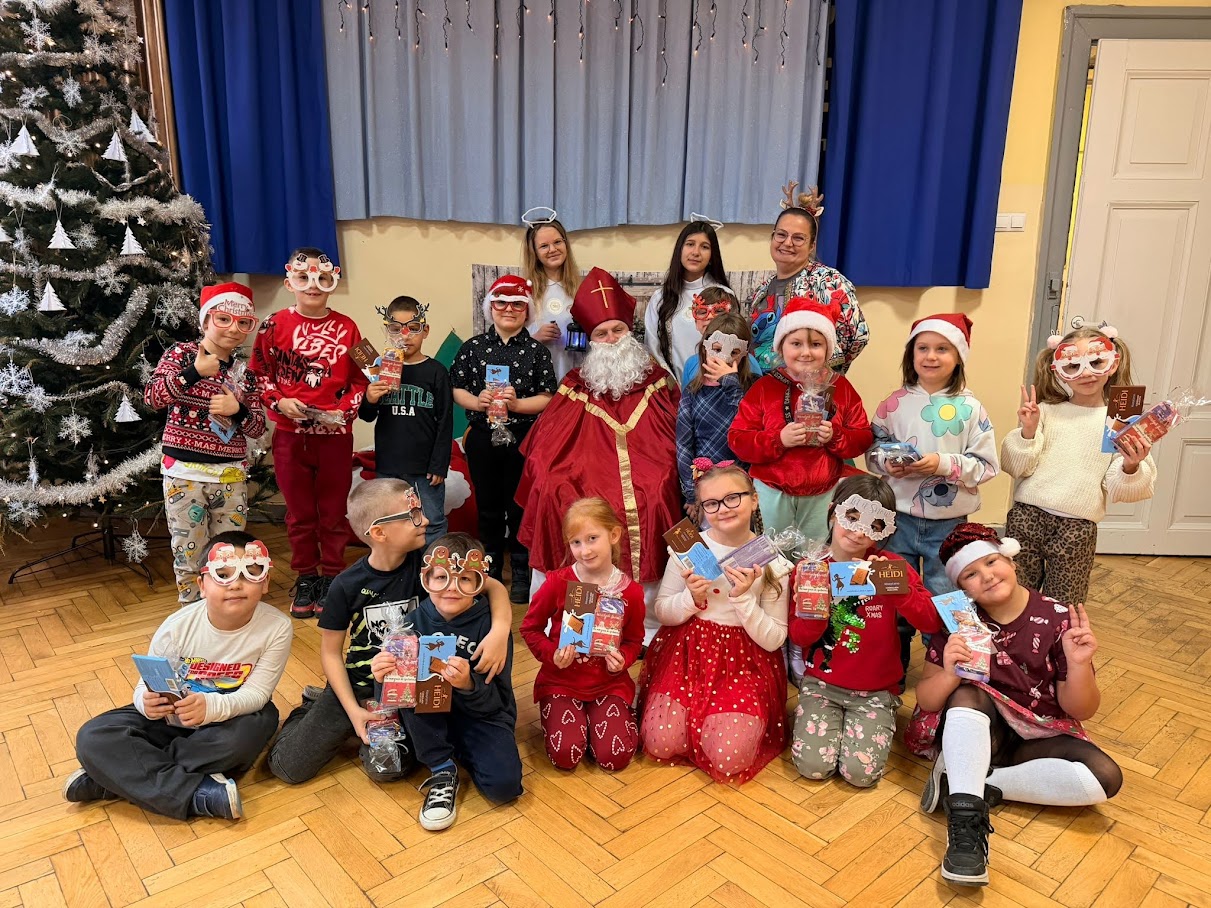 Dzisiaj naszą szkołę odwiedził długo wyczekiwany gość specjalny... Mikołaj! Zasiadł na wygodnym fotelu w holu szkoły i w otoczeniu swojej anielskiej świty rozdawał wszystkim grzecznym dzieciom prezenty. Wręczał też słodkości ufundowane przez Radę Rodziców oraz inne upominki. To był cudowny dzień pełen pozytywnych emocji, który powoli wprowadził nas w przedświąteczną atmosferę.