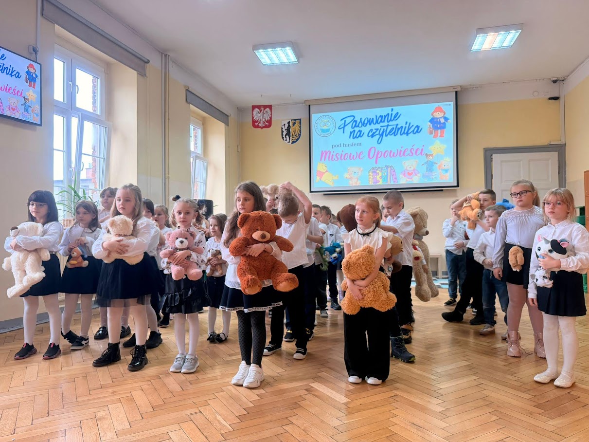 We wtorek 25 listopada w naszej szkole miało miejsce bardzo ważne wydarzenie w życiu każdego pierwszoklasisty- pasowanie na czytelnika. W tym roku odbyło się pod hasłem "Misiowe Opowieści". Uczniowie przygotowali krótką inscenizację, recytowali wiersze i zaśpiewali piosenkę. Bibliotekarz szkolny- pani Joanna Synecka- zadawała dzieciom zagadki na temat bajek i ich bohaterów, którymi nieprzypadkowo były... misie! Mamy nadzieję, że wszyscy pierwszoklasiści zostali oczarowani magią czytania i chętnie będą wypożyczać lektury i inne książki w bibliotece szkolnej!