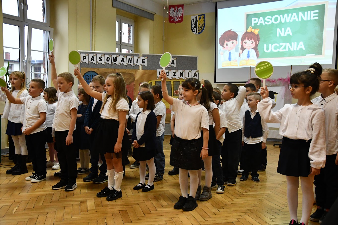 24 października w naszej szkole odbyło się uroczyste pasowanie na uczniów klas pierwszych. Odświętnie ubrani pierwszoklasiści zaprezentowali swoje talenty artystyczne, deklamując wiersze i śpiewając piękne piosenki. Następnie wszyscy zgromadzeni w holu odśpiewali hymn państwowy w asyście szkolnego pocztu flagowego. W tym podniosłym nastroju Pani Dyrektor przyjęła od dzieci ślubowanie i pasowała ich na uczniów Szkoły Podstawowej nr 3 w Bytomiu. Na potwierdzenie tego wydarzenia Pani Wicedyrektor wręczyła dzieciom tarcze szkolne, które uczniowie będą nosić z dumą. Kochani Pierwszoklasiści, witamy w naszej szkole! Rozwijajcie swoje talenty, zdobywajcie wiedzę i bądźcie naszą chlubą!